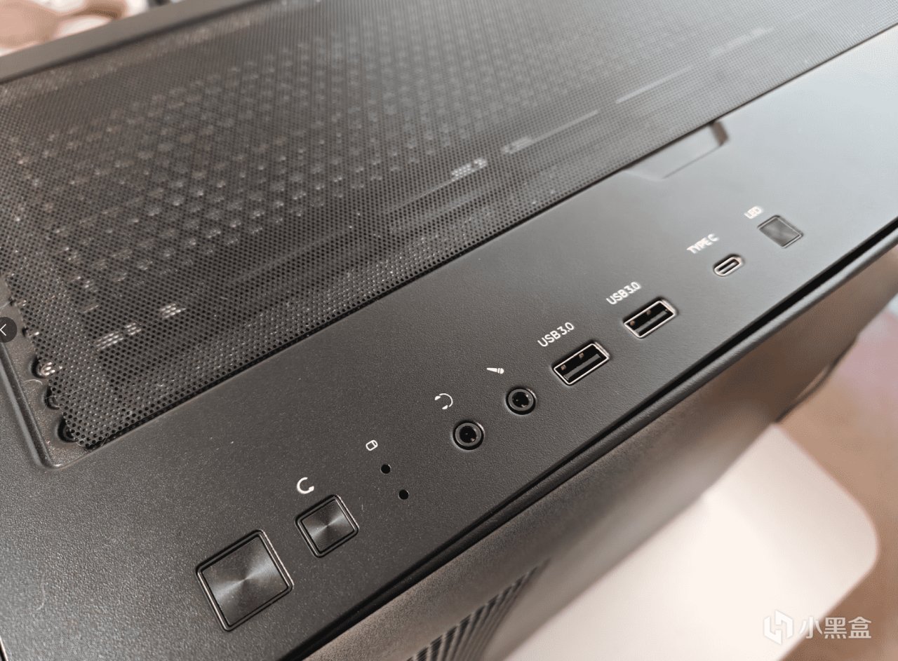 细节设计上,这款机箱把“人性化”刻进了骨子里。顶部集中了开机键、重启键、USB接口和Type-C接口,机箱放地面时插U盘、接设备完全不用弯腰,坐着就能轻松操作。