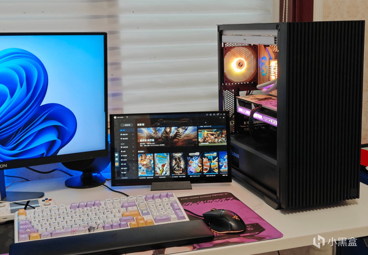 而屏幕则搭配机箱包装内标配的屏幕底座,即可成为桌面的第二屏幕,横放竖放都可以——玩游戏时用它查找攻略,剪辑视频时当素材监视屏,刷剧时直接变身小电视,大尺寸的屏幕要比手机平板爽太多。