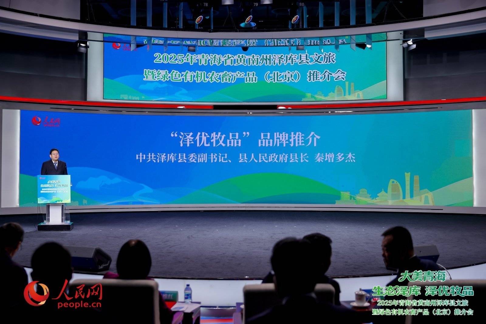 12月9日,“大美青海·生态泽库·泽优牧品”2025年青海省黄南州泽库县文旅暨绿色有机农畜产品(北京)推介会在人民日报社新媒体大厦人民网一号演播厅举行。本次活动旨在全方位展示青海省黄南藏族自治州泽库县在生态旅游建设和绿色农牧产业发展方面的创新成果,提升“高天圣境·生态泽库”品牌影响力。推介会上,中共泽库县委副书记、县人民政府县长秦增多杰推介“泽优牧品”。